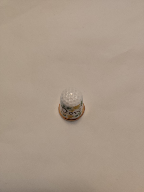 Vingerhoed porcelein opdruk November 2,6cm hoog inscriptie Finsbury Fine Bone China made in England