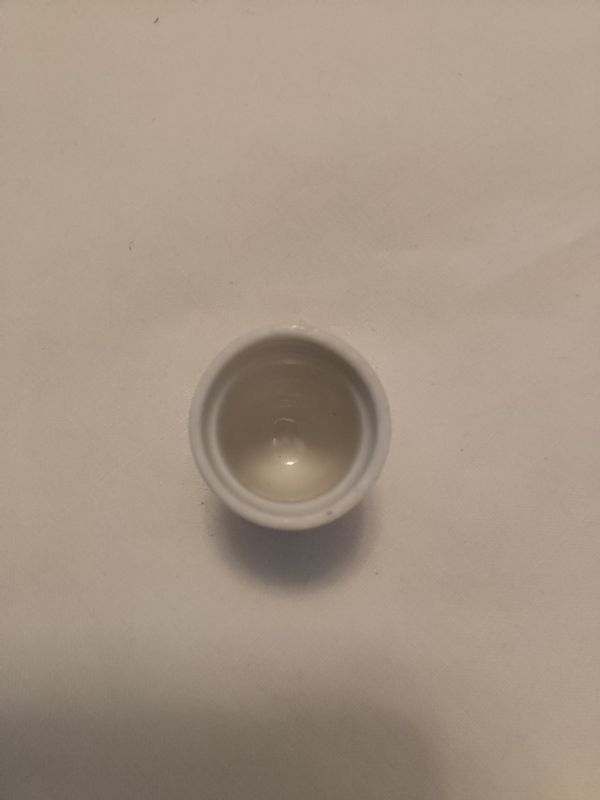 OverzichtOud porceleinen (fine Bone China) vingerhoed, opdruk of opschrift Austria aan beide kanten en geen inscriptie. De maat is 2,8cm hoog en de diameter is 2,4cm.