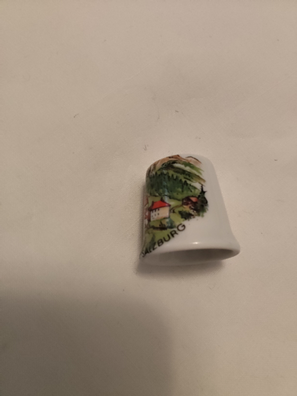 Vingerhoed porcelein opdruk Filzmoos Salzburg 2,8cm hoog zonder doosje