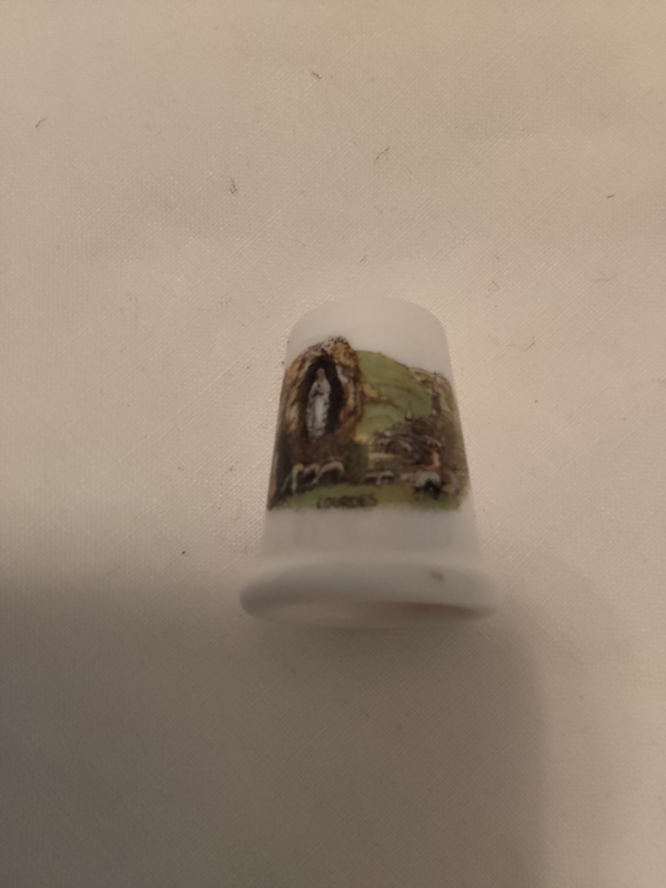 Vingerhoed porcelein opdruk Lourdes 2-zijdig 3cm hoog zonder doosje