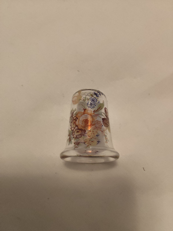 Vingerhoed glas opdruk bloemen en achterkant Praha 3,2cm hoog zonder doosje