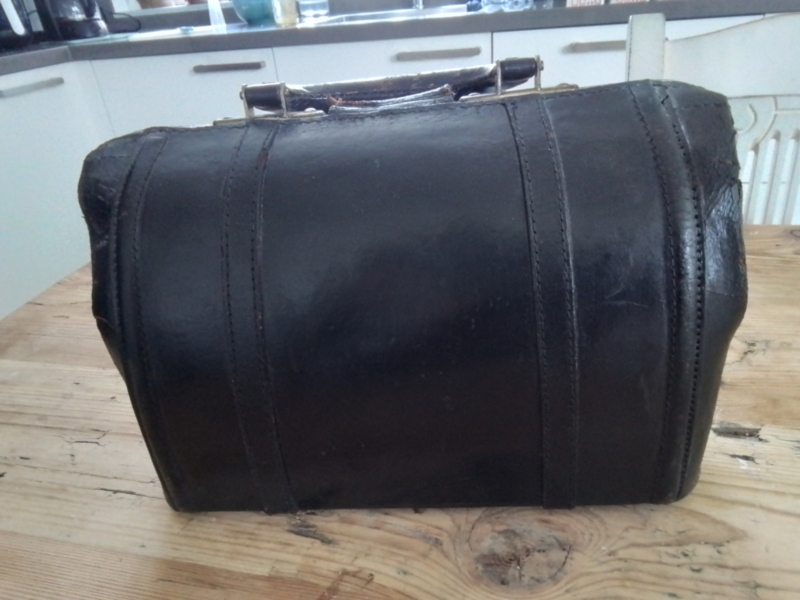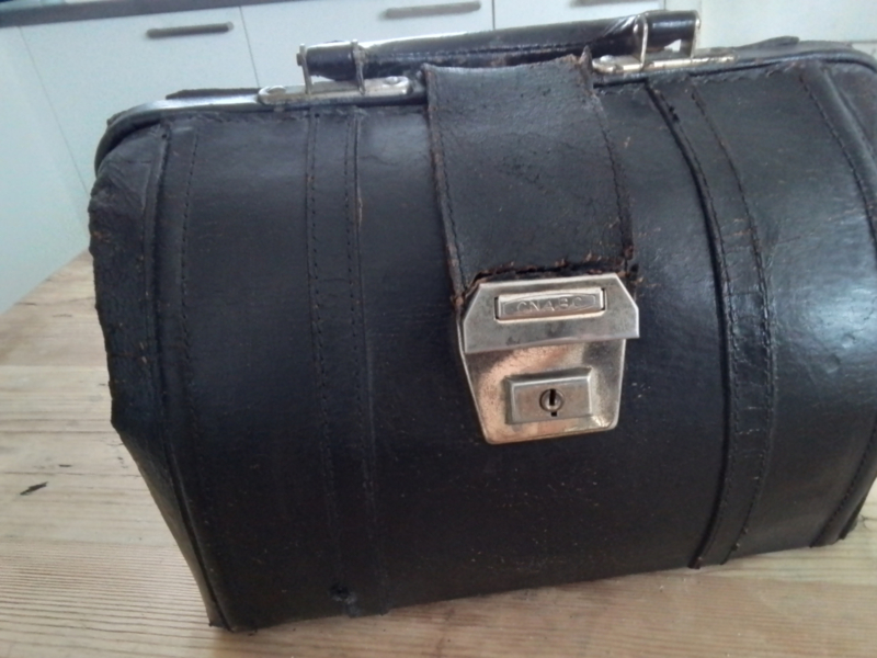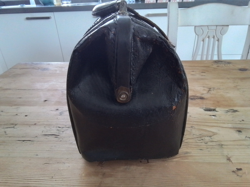 Tasje donkerbruin leder zogenaamd dokterstasje.Tasje donkerbruin leder