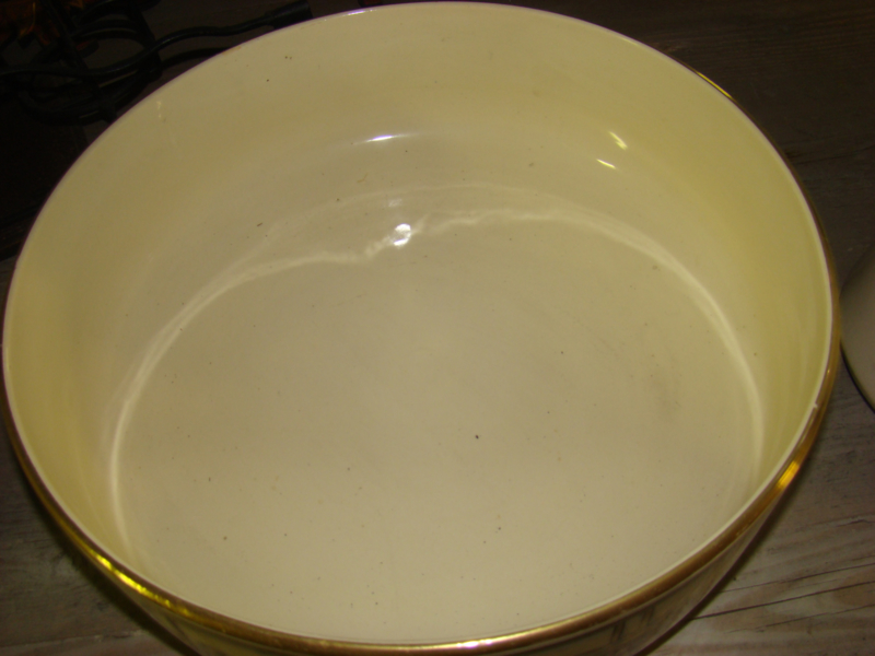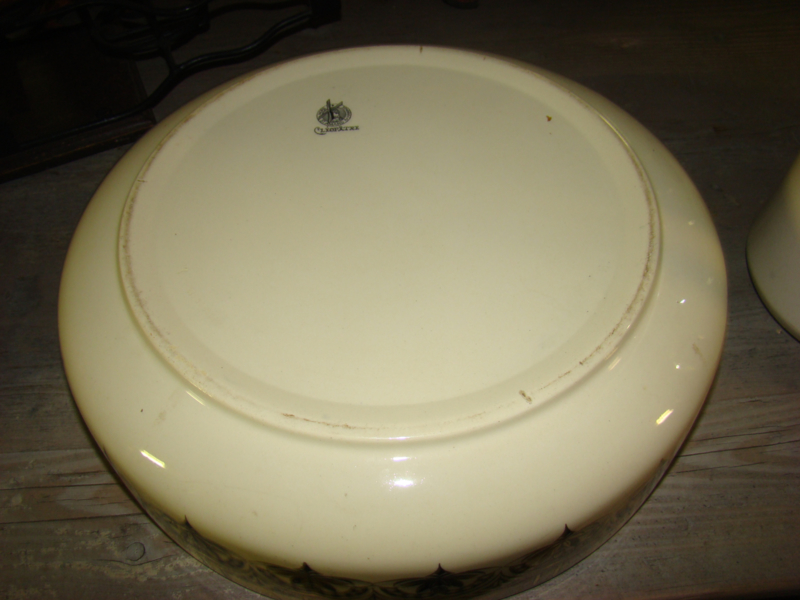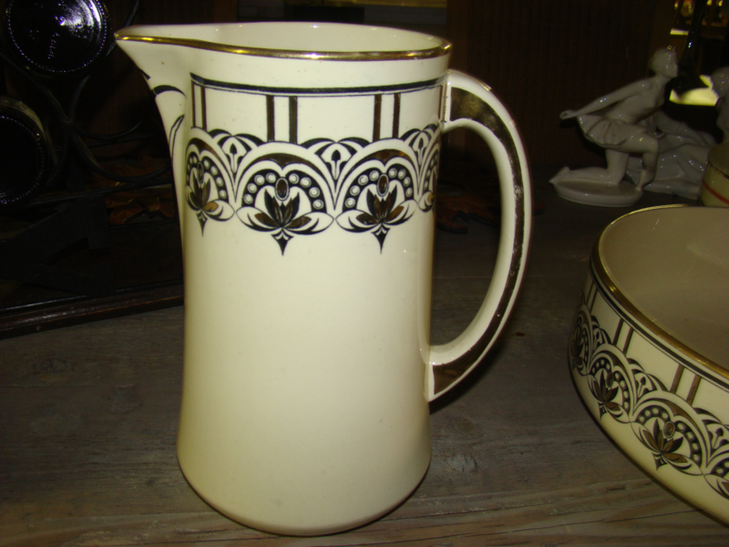 doorsnee schaal 37cm. Leuk om de kan te gebruiken voor bloemen en de bak voor fruit of groenten.
